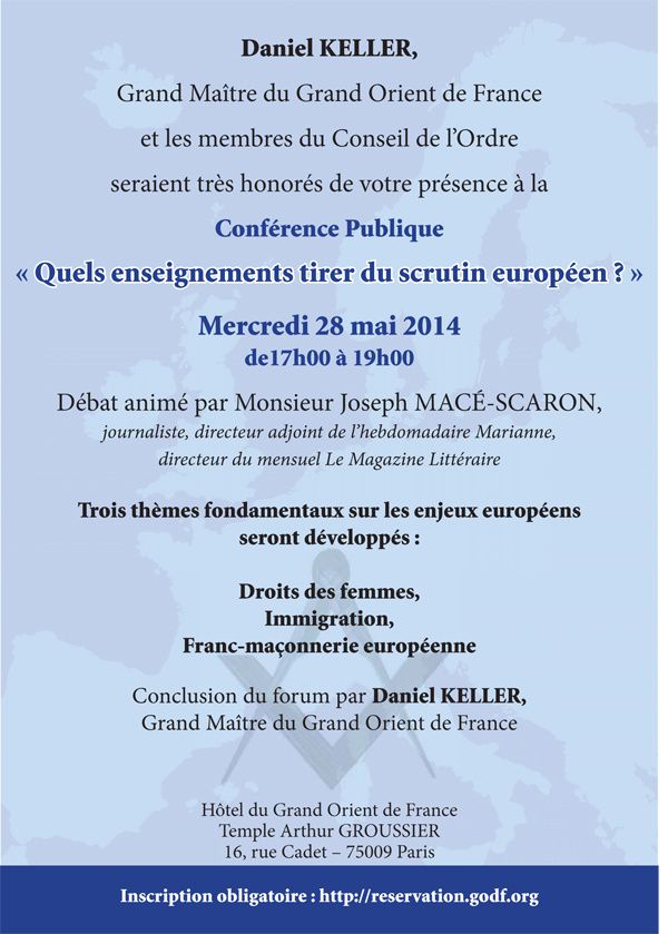 "Quels enseignements tirer du scrutin européen" : Voici une très bonne question que pose le Grand Orient de France le mercredi 28 mai 2014.